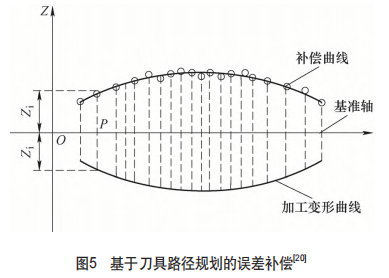 基于上述的預(yù)測模型或在機(jī)測量技術(shù),人們能夠?qū)庸?shù)進(jìn)行優(yōu)化甚至是實(shí)時(shí)調(diào)控。主流的方向是通過刀具路徑的重新規(guī)劃來對變形和振動造成的誤差進(jìn)行補(bǔ)償。這一方向常用的方法是“鏡像補(bǔ)償法”[20](見圖5),該方法通過對名義刀具軌跡進(jìn)行修正,補(bǔ)償單次切削的變形量。但是單次補(bǔ)償會產(chǎn)生新的加工變形,因此需要通過多次補(bǔ)償在切削力和加工變形之間建立迭代關(guān)系,逐次修正變形量。除了基于刀具路徑規(guī)劃進(jìn)行主動誤差補(bǔ)償?shù)姆椒ㄖ?,許多學(xué)者也在研究通過優(yōu)化調(diào)控切削參數(shù)、刀具參數(shù)等方式來控制變形和振動。對于某型號航空發(fā)動機(jī)葉片的切削加工,改變加工參數(shù)進(jìn)行多輪正交試驗(yàn),基于試驗(yàn)數(shù)據(jù)分析各切削參數(shù)、刀具參數(shù)對葉片加工變形、振動響應(yīng)的影響規(guī)律[21-23],建立經(jīng)驗(yàn)預(yù)測模型,從而優(yōu)選加工參數(shù),有效減小