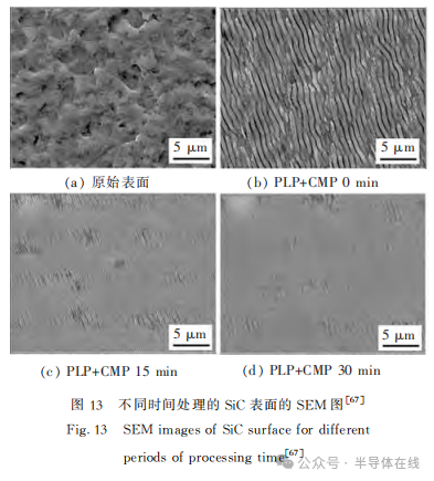 綜上所述,目前CMP的研究比較全面,涉及了分子動力學(xué)仿真模擬和各因素實(shí)驗(yàn)分析,為SiC單晶的超精密拋光生產(chǎn)、應(yīng)用提供了大量的理論和實(shí)驗(yàn)依據(jù)。但是,由于SiC的強(qiáng)化學(xué)惰性,在CMP拋光過程中工件表面的化學(xué)反應(yīng)速率有限,材料去除率遇到瓶頸。