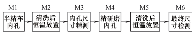 為避免機床精度對加工精度的影響,并且能依靠現(xiàn)有設(shè)備實現(xiàn)輪體加工,同時嚴(yán)格保證內(nèi)孔尺寸和形狀精度要求,經(jīng)過多次工藝摸索驗證,確定使用研磨工藝來實現(xiàn)內(nèi)孔高精度要求。輪體內(nèi)孔加工工序如圖2所示。同時,為減輕研磨操作強度和提高效率,研磨前將孔余量精準(zhǔn)控制在0.01~0.02mm,圓柱度優(yōu)于8μm,表面粗糙度值Ra<1.6μm。這樣就需對輪體的車削和研磨技術(shù)進行深入的研究。